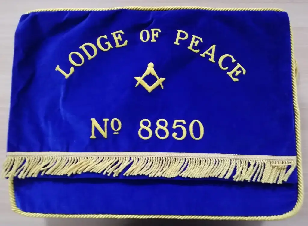 A Blue velvet cushion used to display the Holy Bible at Freemason Lodge meetings in Thame