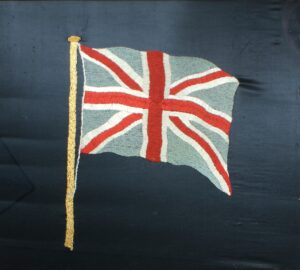 October’s object of the month is a flag embroidered by Frank Lines while recovering in Hospital during WWI.