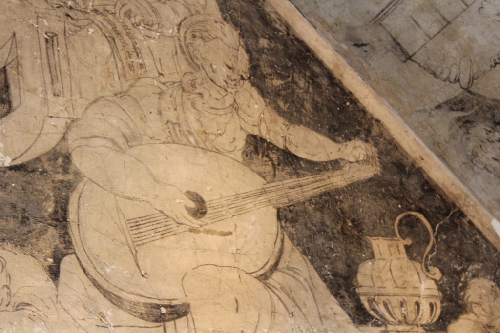 When Thame Museum was opened in 2007 the wall-paintings were installed in their own space. The original ceiling at 34 Upper High Street was angled, so in one of the rooms of the museum, which originally had a rounded ceiling, a wooden reconstruction of the original angled ceiling was built to house the wall paintings.