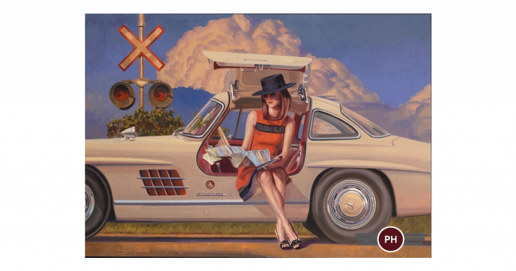 Peregrine Heathcote’s paintings conjure a world of intoxicating glamour and intrigue, fusing iconic pre-war design with modern conceptions of beauty and silver screen romance. Peregrine was born in London in 1973. He graduated from the Florence Fine Art Academy in 1994 and began his professional career as a working artist in 1995.