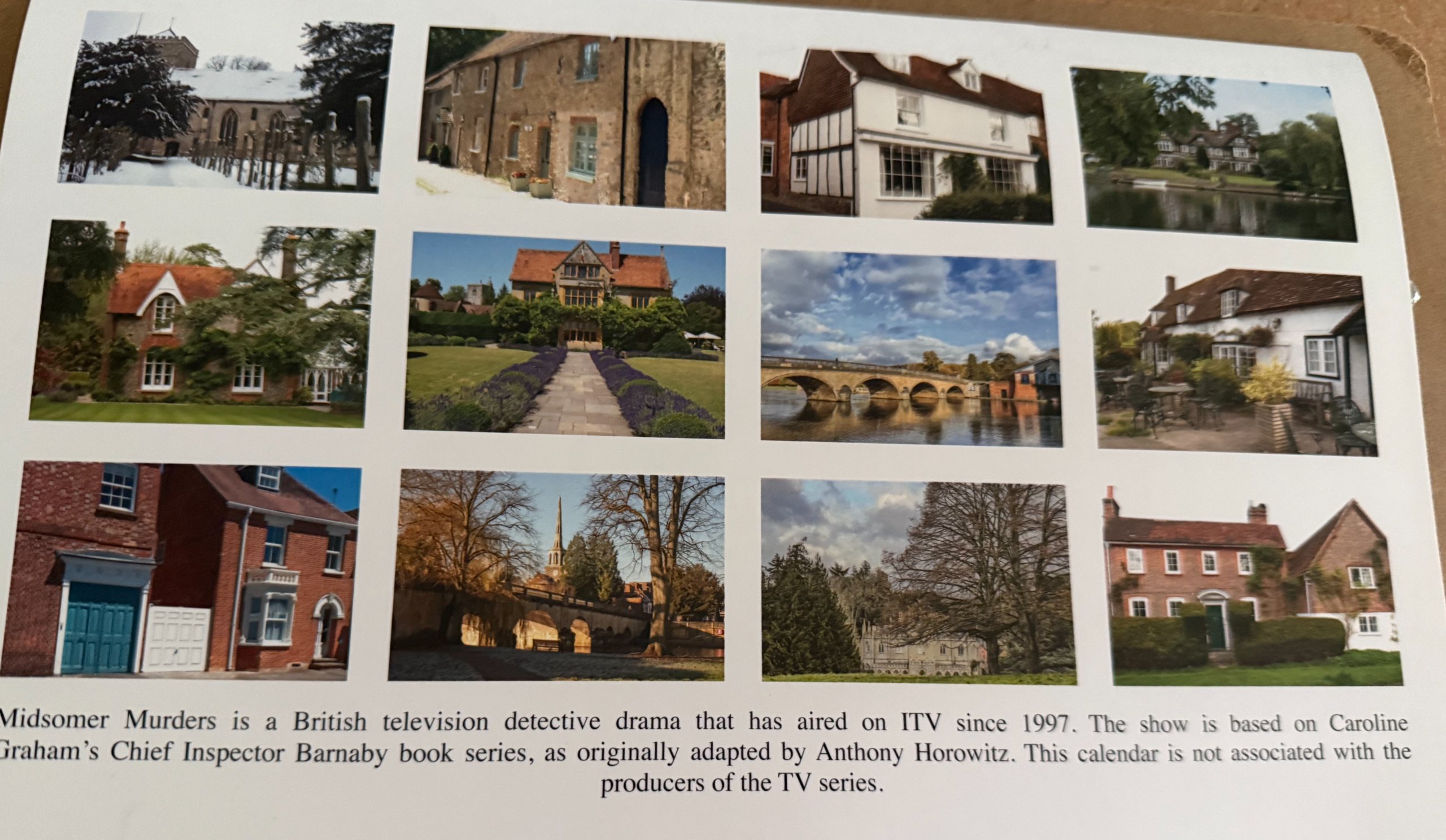 Midsomer Murders calendar for 2026 including scenes from Thame and the local area which were used as locations for the series. A great stocking filler for fans of Midsomer.