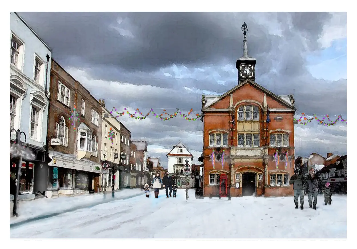 Christmas card view of the Town Hall by Gerald Bright