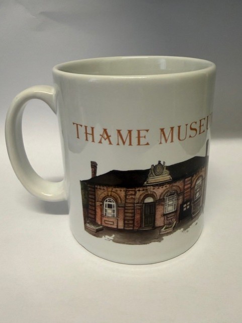 Mug is ceramic, and has Thame Museum on the side.