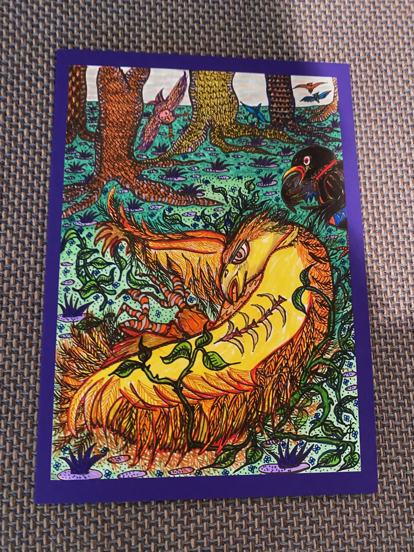 A beautifully illustrated greetings card by Dwina Gibb and signed by the artist.