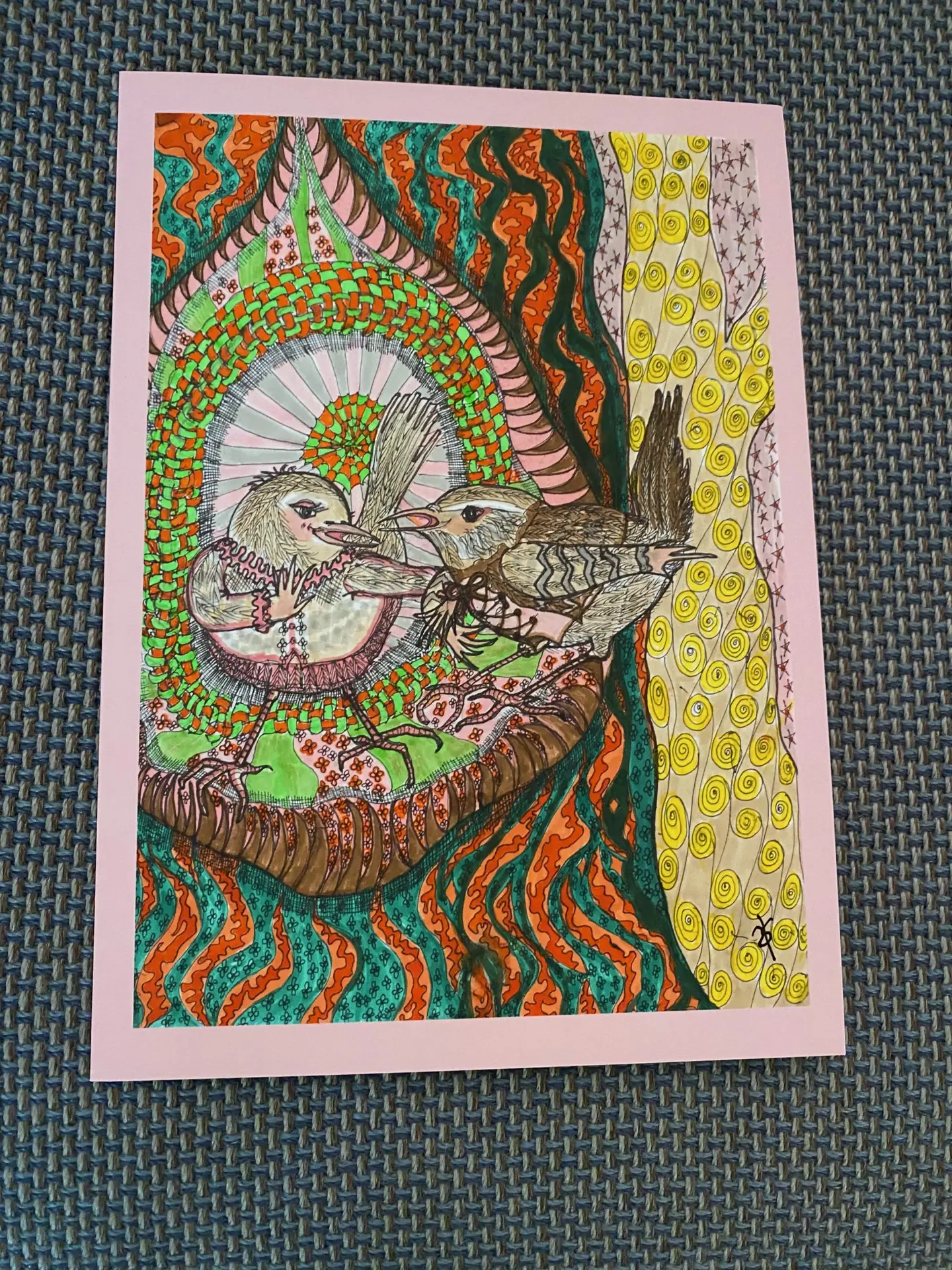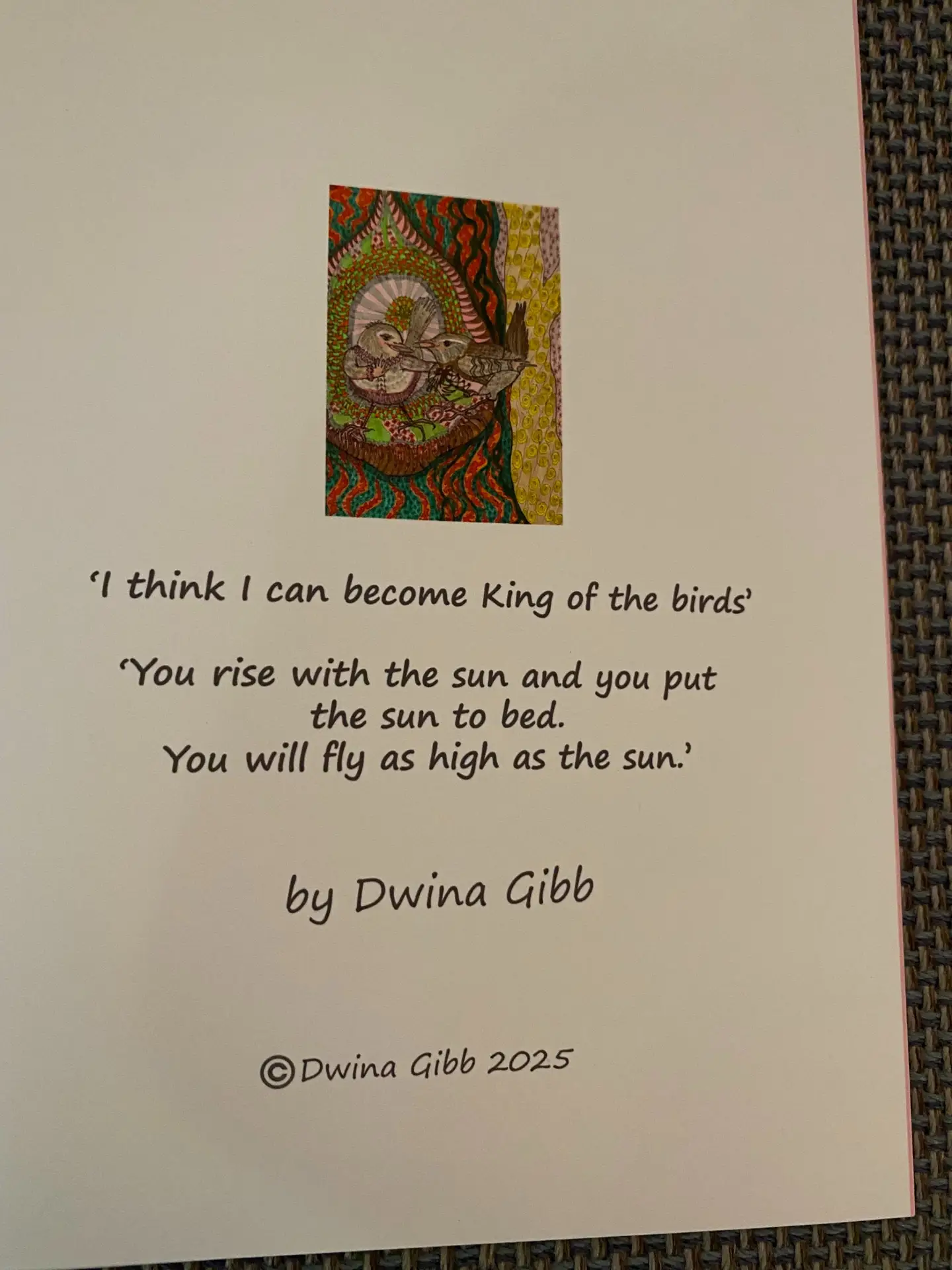 A beautifully illustrated greetings card, by Dwina Gibb, with a poem, and signed by the artist .