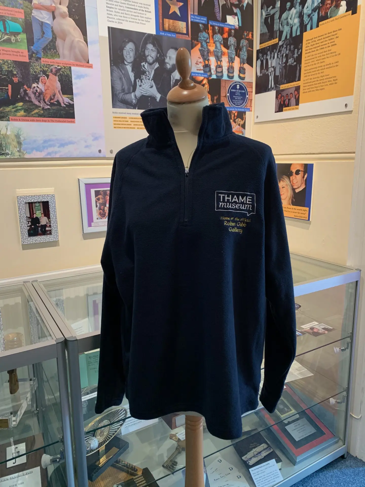 Soft feel long sleeved Fleece embroidered logo – Thame Museum Home of the Robin Gibb Gallery 100% fleecy polyester. French Navy Blue. Zip neck fastener