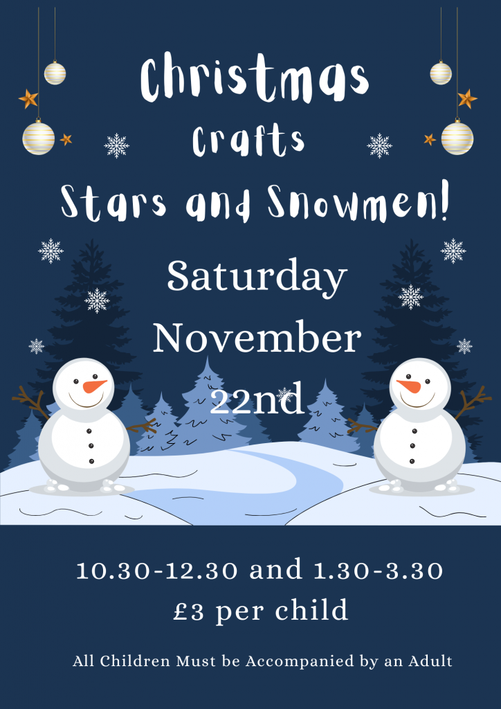 Join us on Saturday 22nd November to make Christmas cards, snowmen decorations, snowmen shakers and stars to hang up, all to take home. There will also be a Hunt the Stars Trail to follow.
